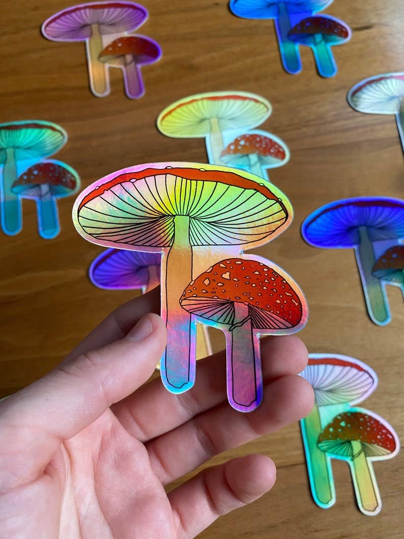 Get your groove on with these super fly stickers! 100% Designed by me, these stickers are thick and durable vinyl which protects your stickers from scratches, water & sunlight. And did I mention they're holographic?! Size: 1.2" X 4".