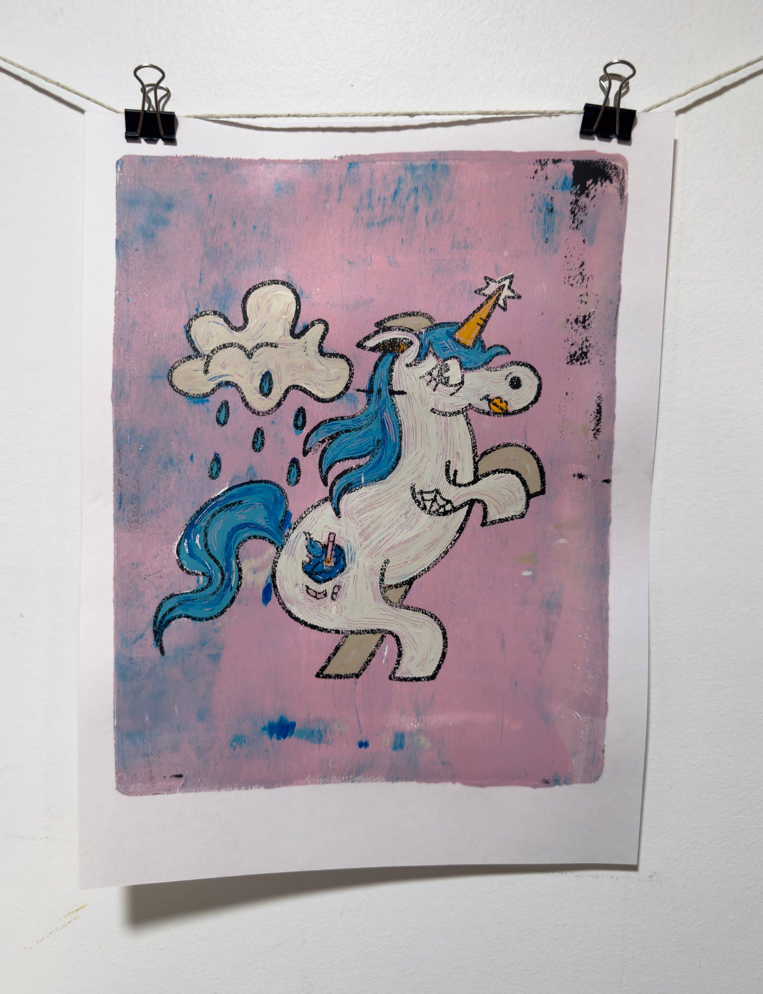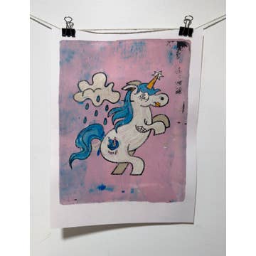 "When will my reflection show who I am inside?" -Christina Aquilera Four color Riso print of a contemplative snail monster gazing at her reflection in a luscious violet pond, surrounded by smiling flowers. Riso printed in Aqua, Yellow, Fluorescent Pink, and Black on 110lb white cardstock, packed in flap seal poly bag with white backing board 8.5"x11" Design by Brian Dove