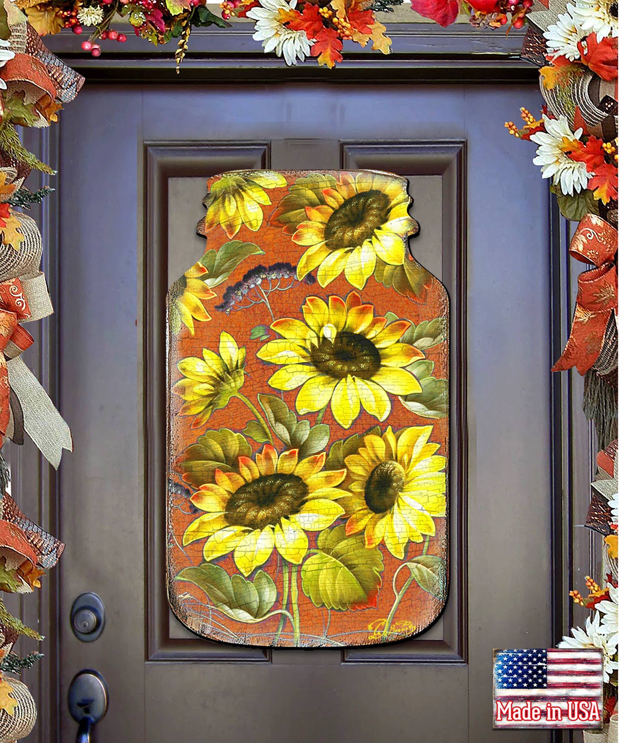 Home Malone - Wholesale Door Hanger - Sunflower Check Vase Door Hanger-Checkered Trend Floral0