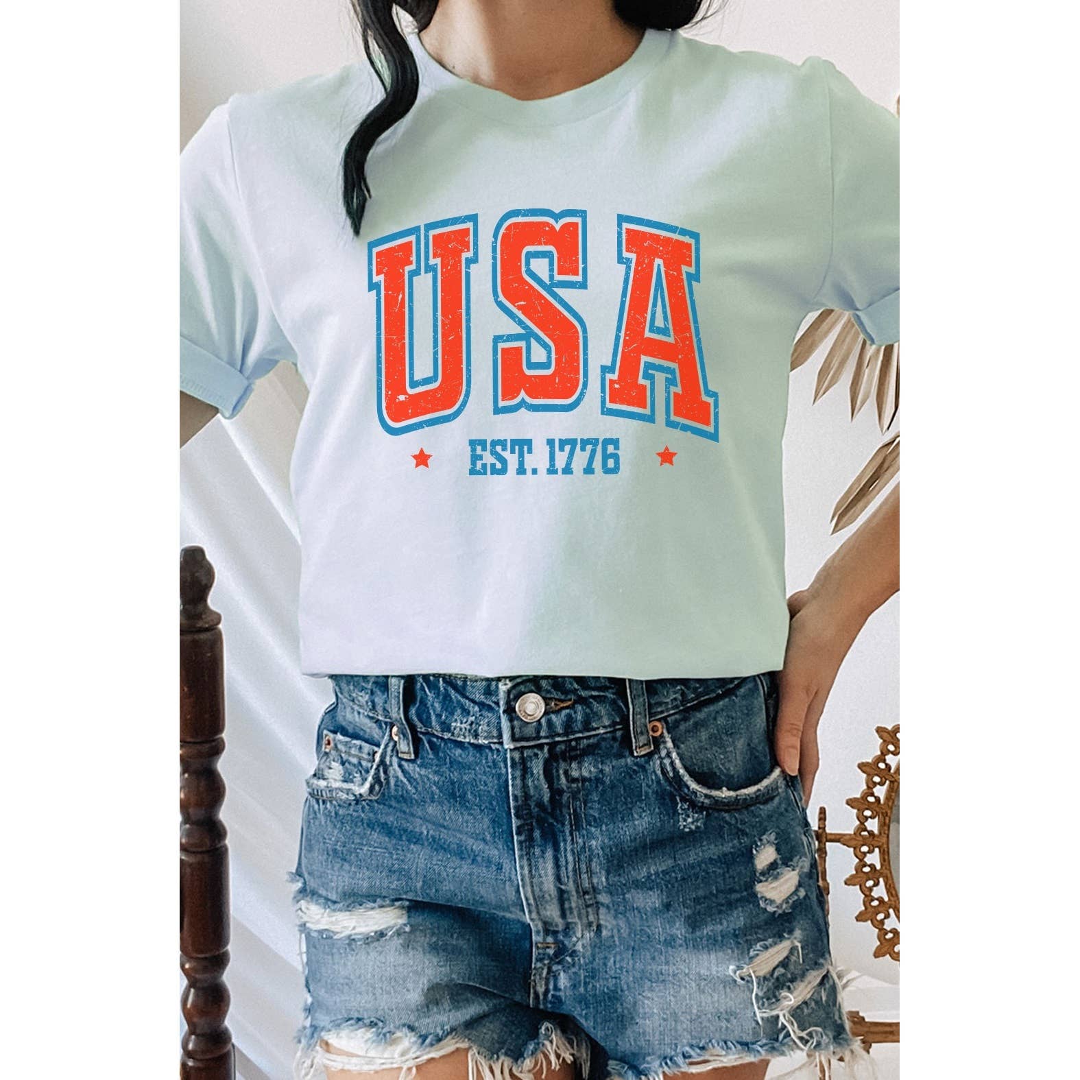 USA est. 1776 Patriotic 4th of July Crop Top Shirts for women The perfect shirts for any Independence day party! Shirt Colors Available: Natural with Navy Blue Stripes, Navy Blue with White Stripes, Mauve with White Stripes Women's Sizes Available: S, M, L, XL, XXL These run true to size. We recommend sticking with your normal shirt size, unless you are in between sizes or prefer a looser fit then order a size up.