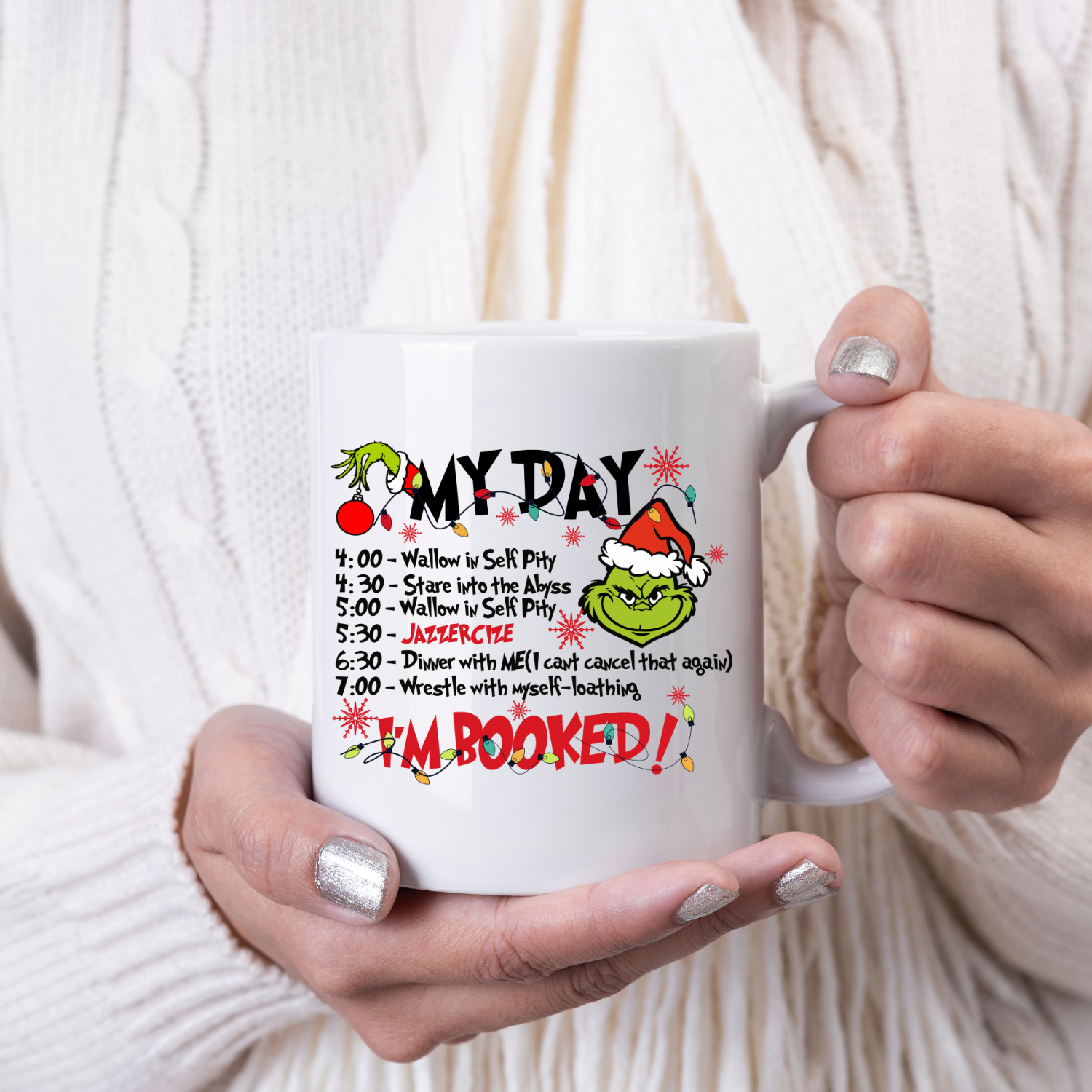 This mug offers a special way to enjoy watching Hallmark's Grinch movies! It's made from durable ceramic and has a funny message to make every sip special! With a comfortable handle and large capacity, it's the perfect way to enjoy your cozy movie nights. Packaging: 1 Gift Box