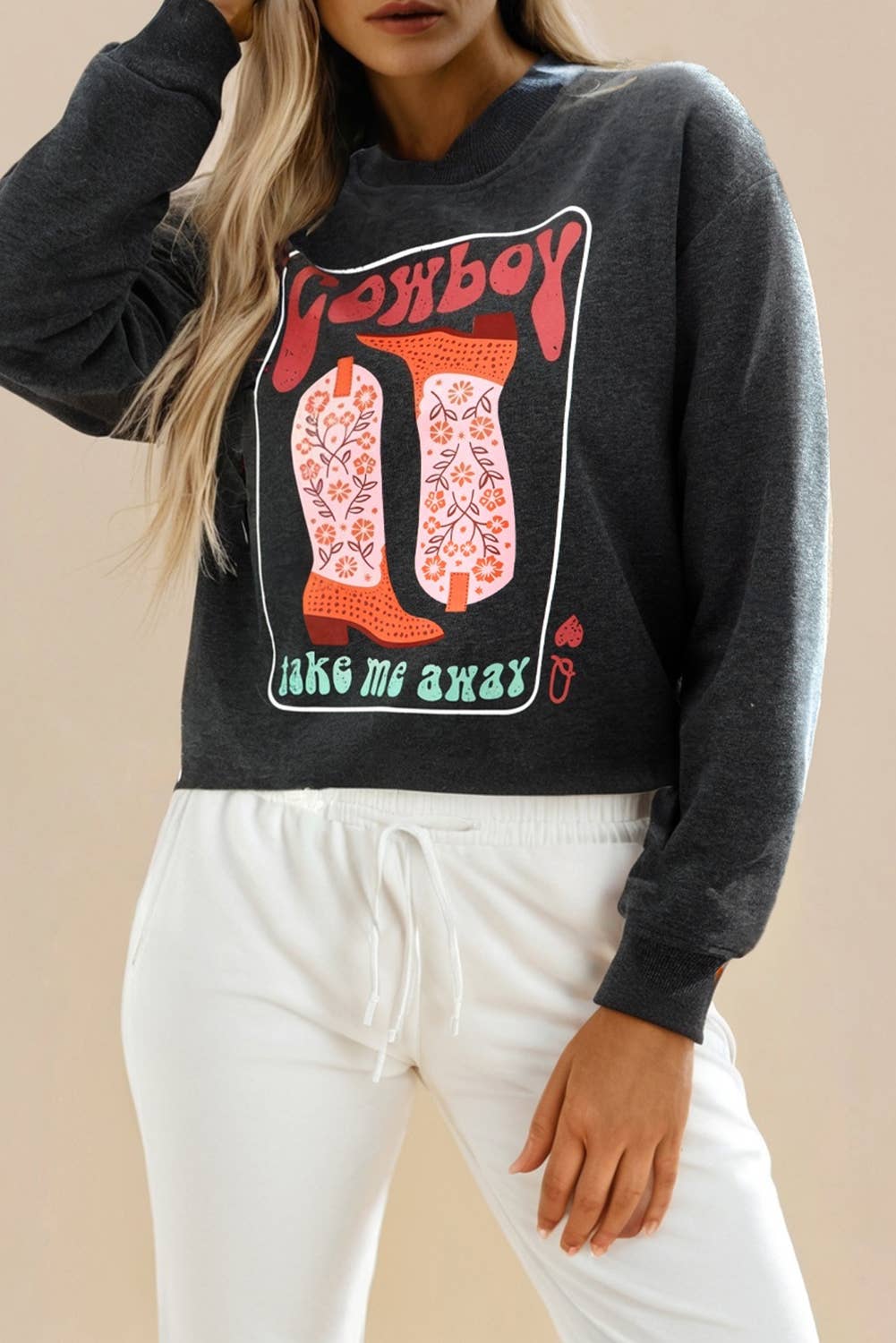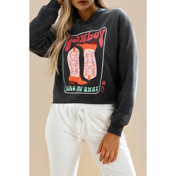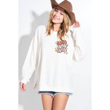 -Cotton Long Sleeves -Western Cowgirls Rodeo Print -Loose Fit -Fall, Winter Top -Everyday Casual Top -Model Wear S. Model: 5'10" 32-26-38 -Made In USA