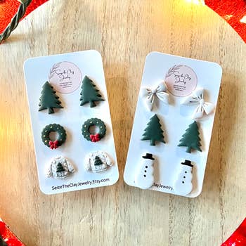 Suggested retail for one card is 8-12! Autumn Things features: *Two 14mm Vintage Gold Glitter Sunflower *Two 12x14mm White Glitter Pumpkins *One 12x15mm Rose Gold Glitter Maple Leaf *One 12x15mm Copper Glitter Maple Leaf *All on hypoallergenic surgical stainless steel posts *Great for sensitive ears *Made in the USA Fans of all things Fall will love!