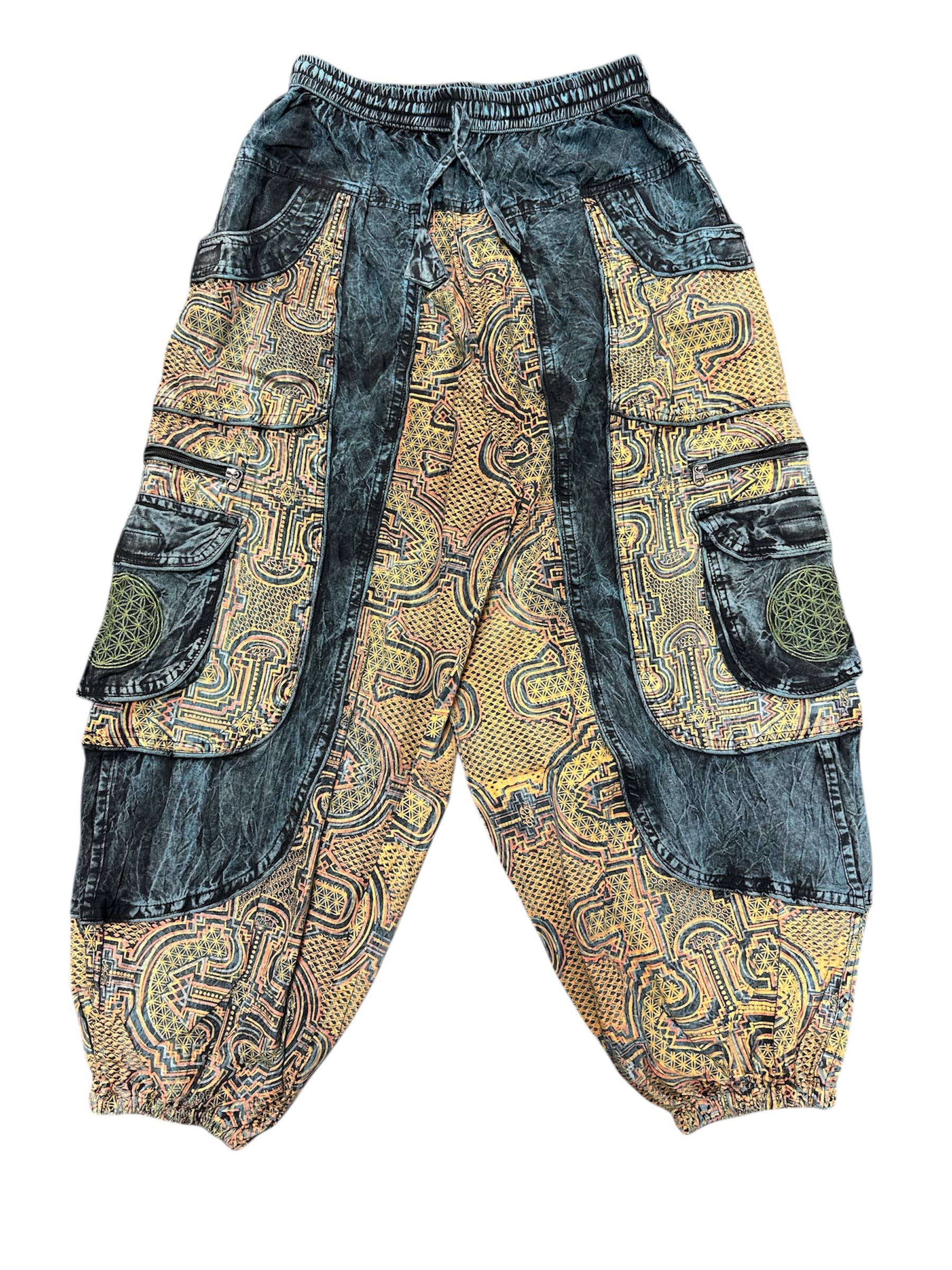 These unique Hippie Solid Color Moon Mushroom Embroidered Plain Gheri mix Pants are crafted from the finest 100% Natural Handwoven Cotton by some of the most skilled artisans. Elevate your style instantly with these extraordinary and highly fashionable Solid Color Pants that are suitable for almost any occasion, ensuring you look your best every single time. These vintage trendy trousers add a spark of uniqueness to your wardrobe and are designed to be worn by everyone. They are available in three sizes: Small/Medium, Large/Extra Large, and XXL. As previously mentioned, only the finest materials have been used in crafting these trousers, featuring a range of unique attributes, including adjustability and a variety of pockets, all equipped with safety features such as zippers and buttons to provide the utmost comfort and security