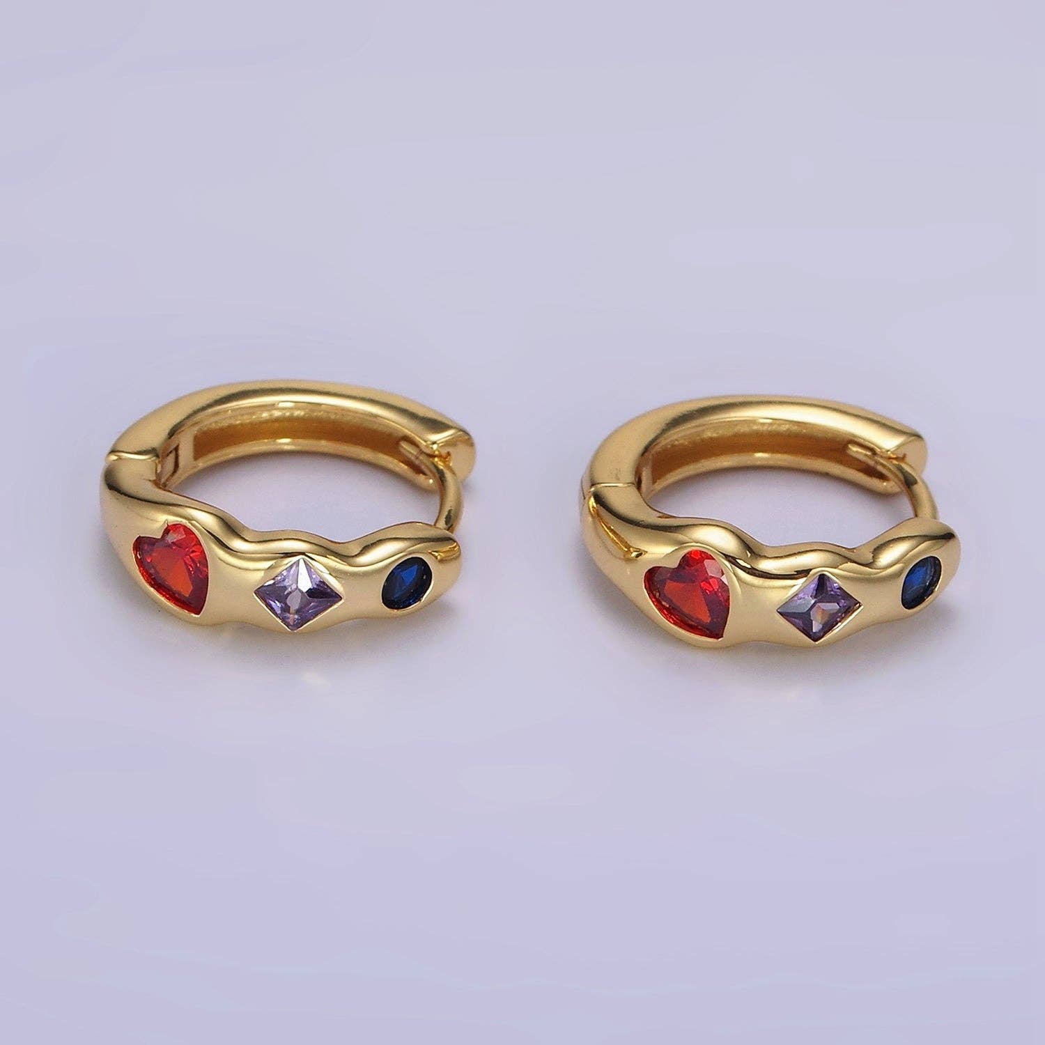 14K Gold Filled Multicolor CZ Dot Marquise Heart 15mm Huggie Earrings | AE916