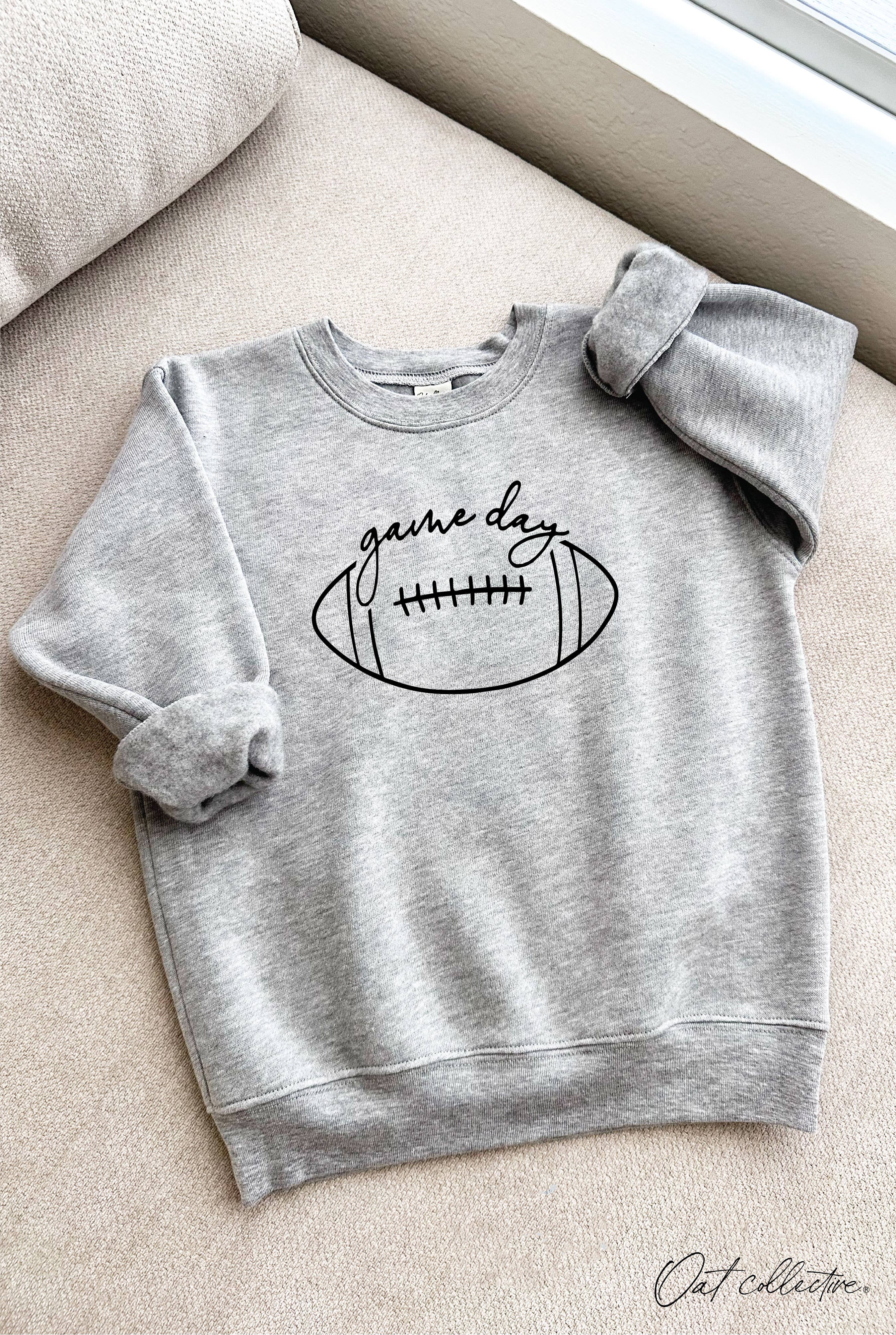 DTF transfer on a Rabbit Skins Sweatshirt 7.5 oz./yd² (US), 12.5 oz./L yd (CA), 60/40 cotton/polyester White is sewn with 100% cotton thread Coverstitched collar, shoulders, armholes, ribbed cuffs and waistband CPSIA compliant tracking label on side seam Easy Tear label This product meets the following Sustainable Style subcategory: Socially Conscious Manufacturing: This product was made in a facility that is WRAP certified