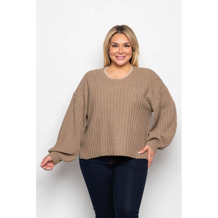 ....SI-21303 Long Puff Slv V Neck Rib Sweater
