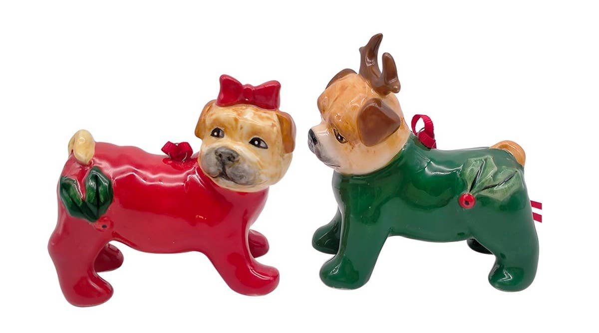 Hand Painted and sculpted, this adorable Pug dog ornament is a fantastic addition to your tree. Our Pug dog ornament is realistically sculpted, cast in quality designer resin and hand painted. The perfect canine gift for Pug dog aficionados and a fun way to include your pets in holiday decorating!  Specifications: - Imported - Material: Resin - Color: Multi-Color - Weight: 0.25 lbs. - Dimensions (inches, LxWxH): 2.25 x 1.5 x 3.75 - Home Decor, Gifts, Christmas Ornaments, Christmas Décor, Holiday Ornaments