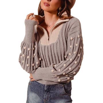 WHOLESALE ROUND NECK PUFF SHORT SLEEVE "POLKA DOT" EMBROIDERED SWEATER