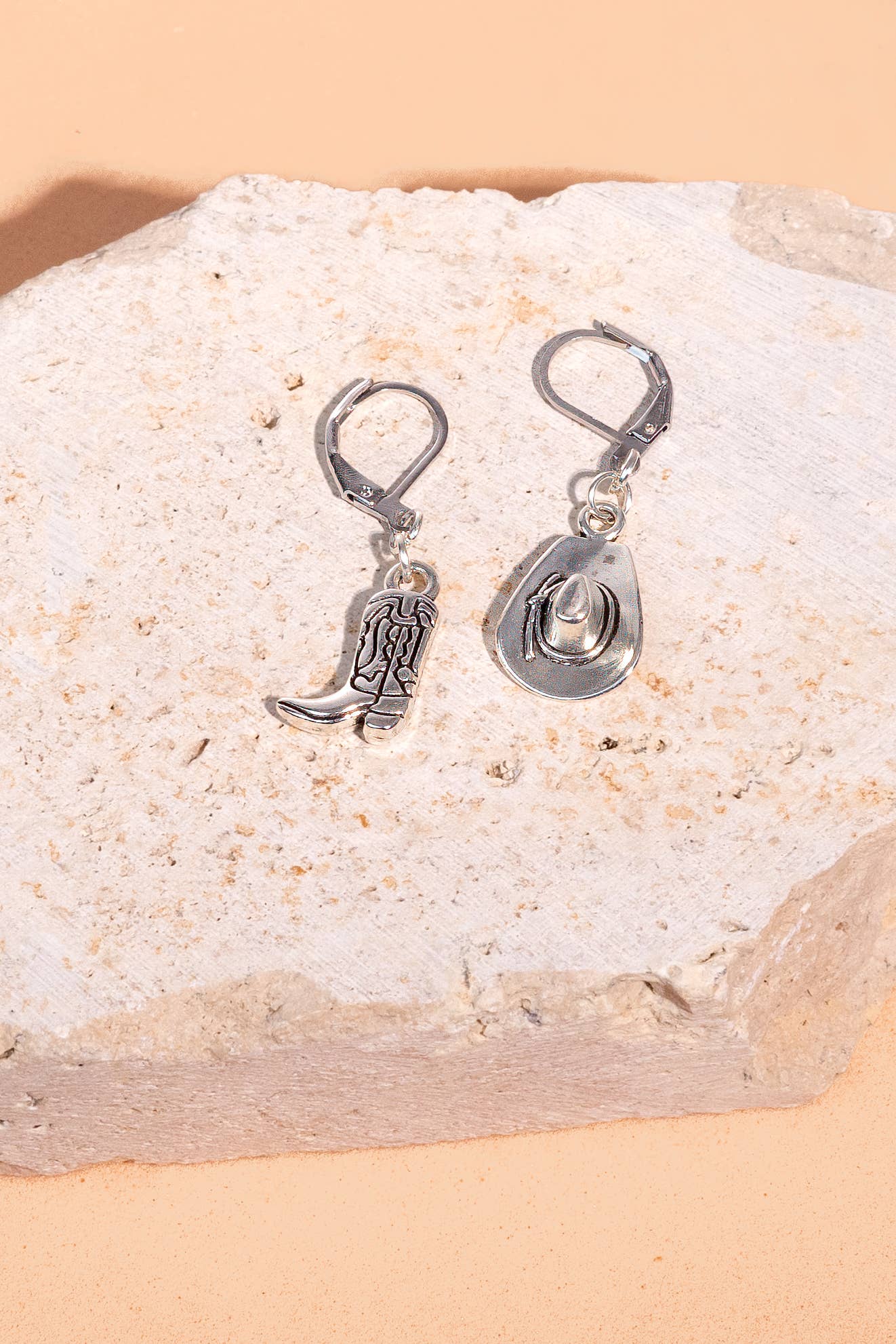 Wholesale Western Cowgirl Hat Boot Asymmetric Huggie Earrings - FGS/WJ