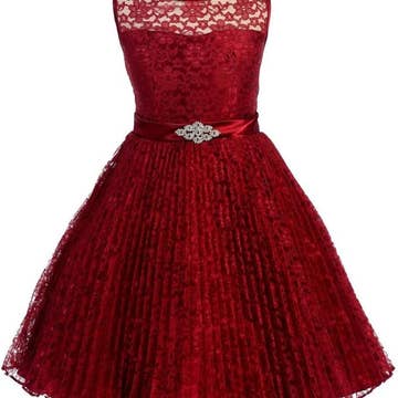 Red Vintage Lace 3/4 Sleeve A-Line Girl Dress