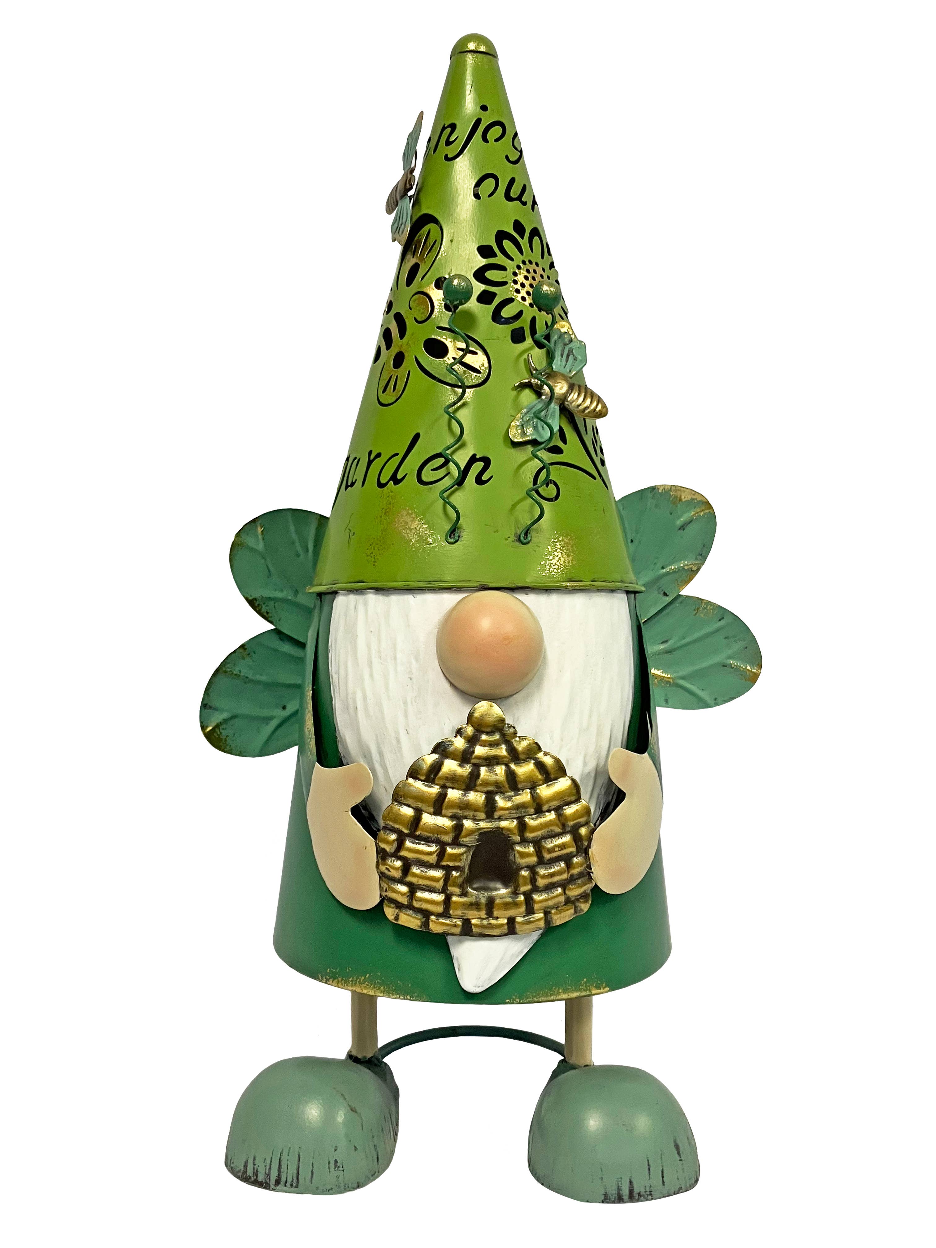 Give your garden a guardian, with Brandis, the diligent yet delightful solar garden gnome. Brandis will stand stout, day and night, and when the night falls, his mushroom will glow providing a nice notification to any creepers of the garden – they are being watched! Handcrafted & painted durable metal Free Standing Features solar LED with dusk to dawn Great gift for your gnomie's! Measures approximately: 11.81 x 7.68" x 16.54