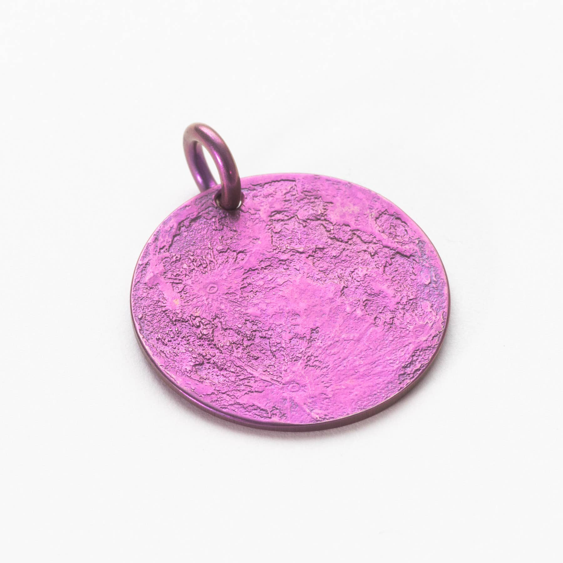 ☽ Pluck the moon out of the sky ☾ This coin of Earth's Moon features a geographically (technically it's selenographically) correct 136,794,240:1 scale design of the surface texture of both its near and far side. A great worry coin, gift, or reminder coin. Struck in solid copper Expert patina to highlight the engraving 1.5" coin weighs 26 grams Archival packaging comes with a description of the coin and Moon Facts! Designed and engraved by Woody Maringer. © Shire Post Mint. All rights reserved. **SAMPLE COIN HAS HOLE**