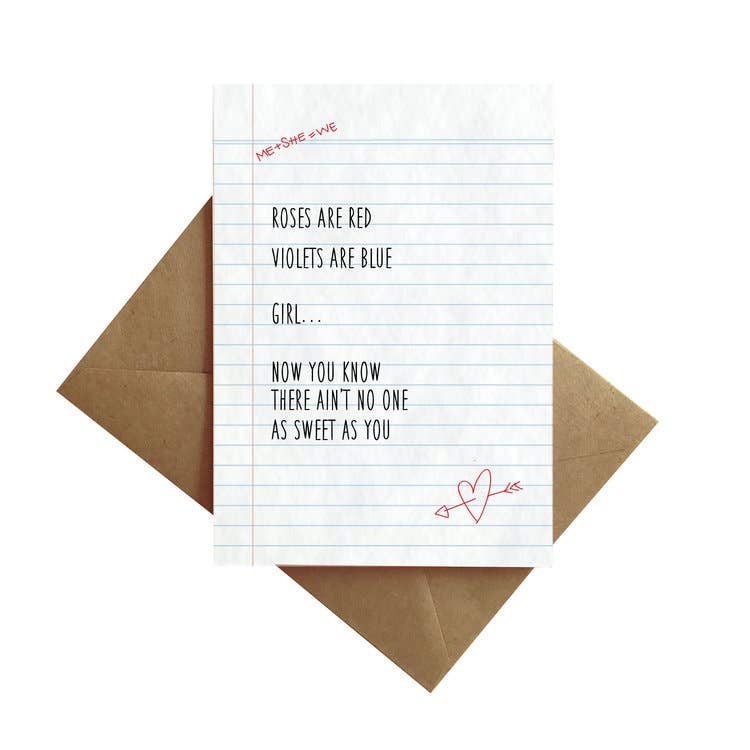 This greeting card was designed by our own William Muller and features a beautiful sentiment on the nature of love. The quote is letterpress printed on fine heavy weight paper and is then die-cut into a folding heart shape cards here in our studio in Easthampton, Massachusetts. This card features a die-cut heart shape cover and is blank inside. This card fits an A1 sized envelope measuring 3 1/2” x 4 7/8”