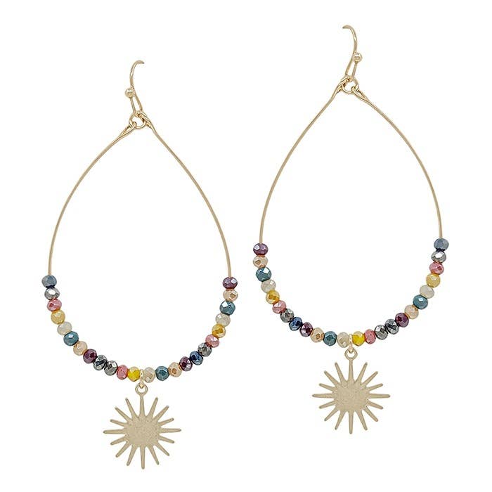 Sassy sunburst These fabulous earrings boast of a bold sunburst, encircling a faceted glass gem of peacock blue. Dramatic and fun, these earrings are compliment worthy and eye catching. Hypoallergenic and nickel free. These earrings are lightweight and measure slightly over 3.5" in length Our in-house jewelry line is created through a partnership with Agape International Missions whose mission is freedom at all costs. The artisan partners at AIM's employment centers receive healthcare, childcare, counseling, and continued language education, all while being compensated well above the national average. Your purchase is directly impacting the lives of women around the globe!