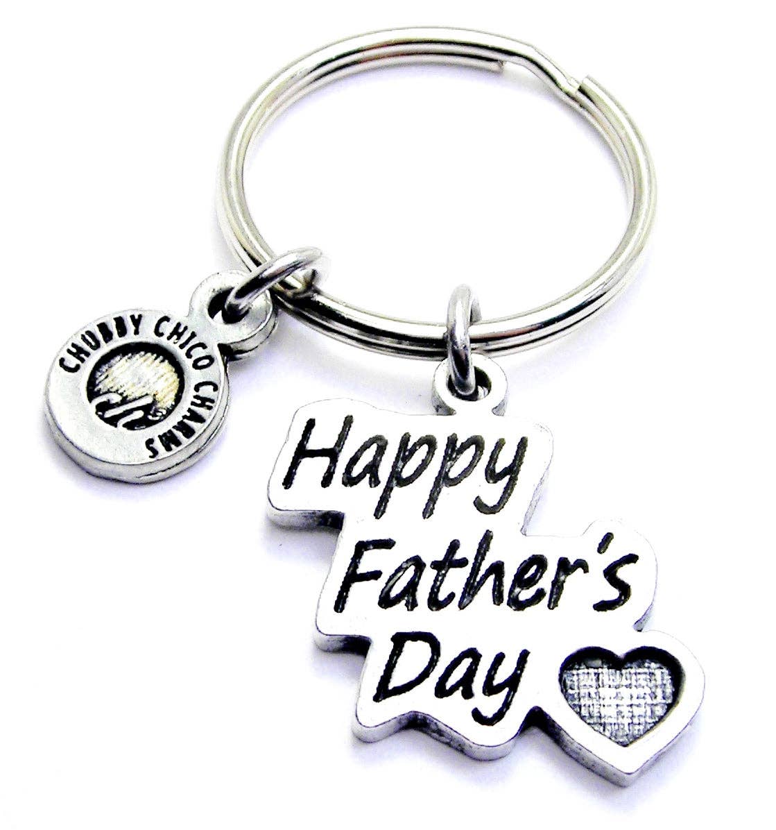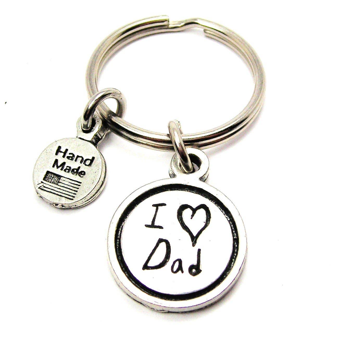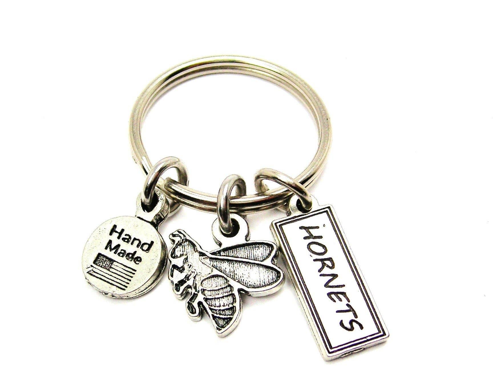 One of our 100% genuine American pewter charms hung from a steel standard size key ring.