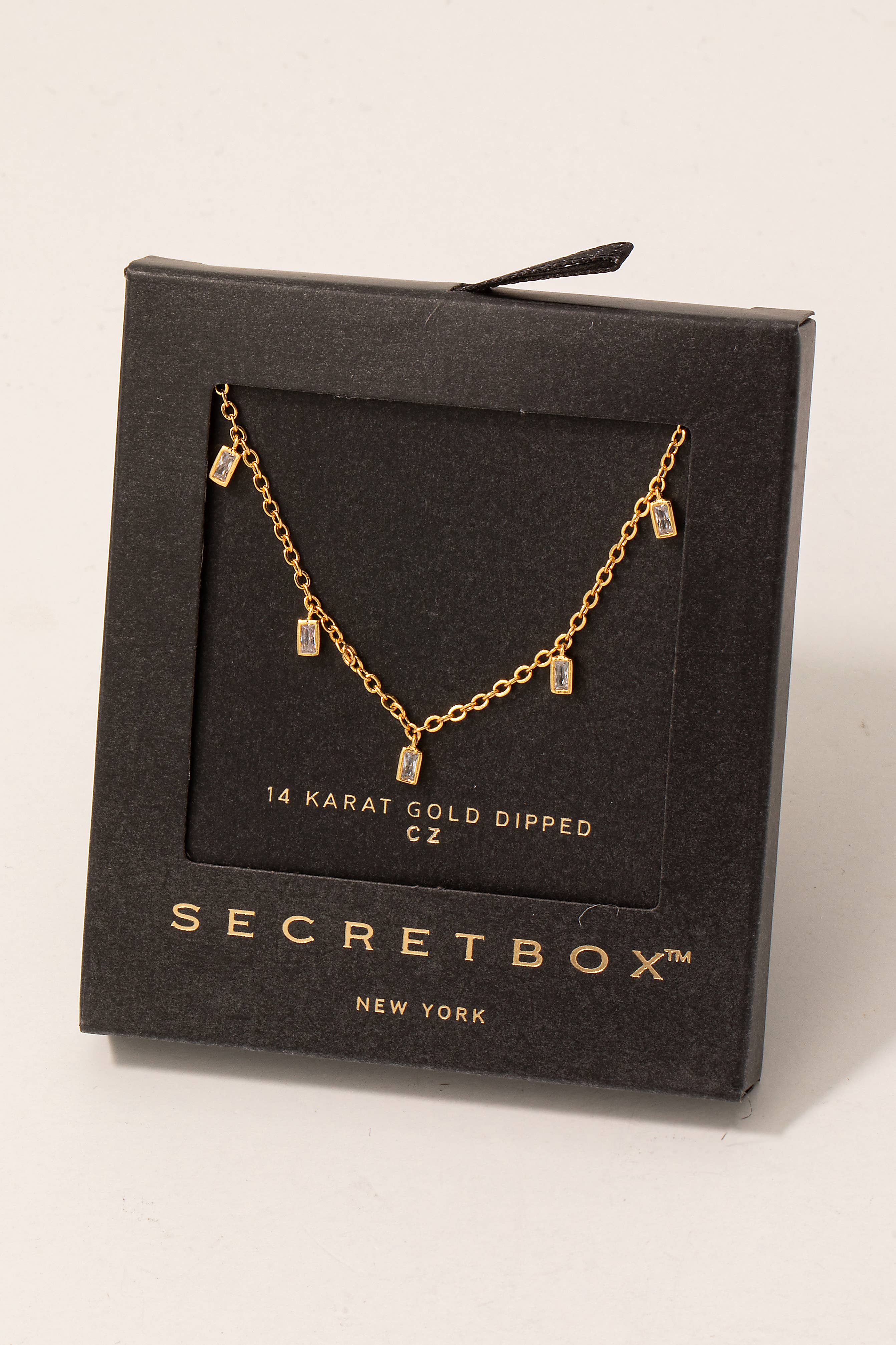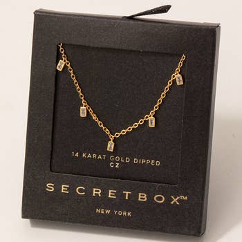 14K Gold Plated Square CZ Stone Pendant Necklace