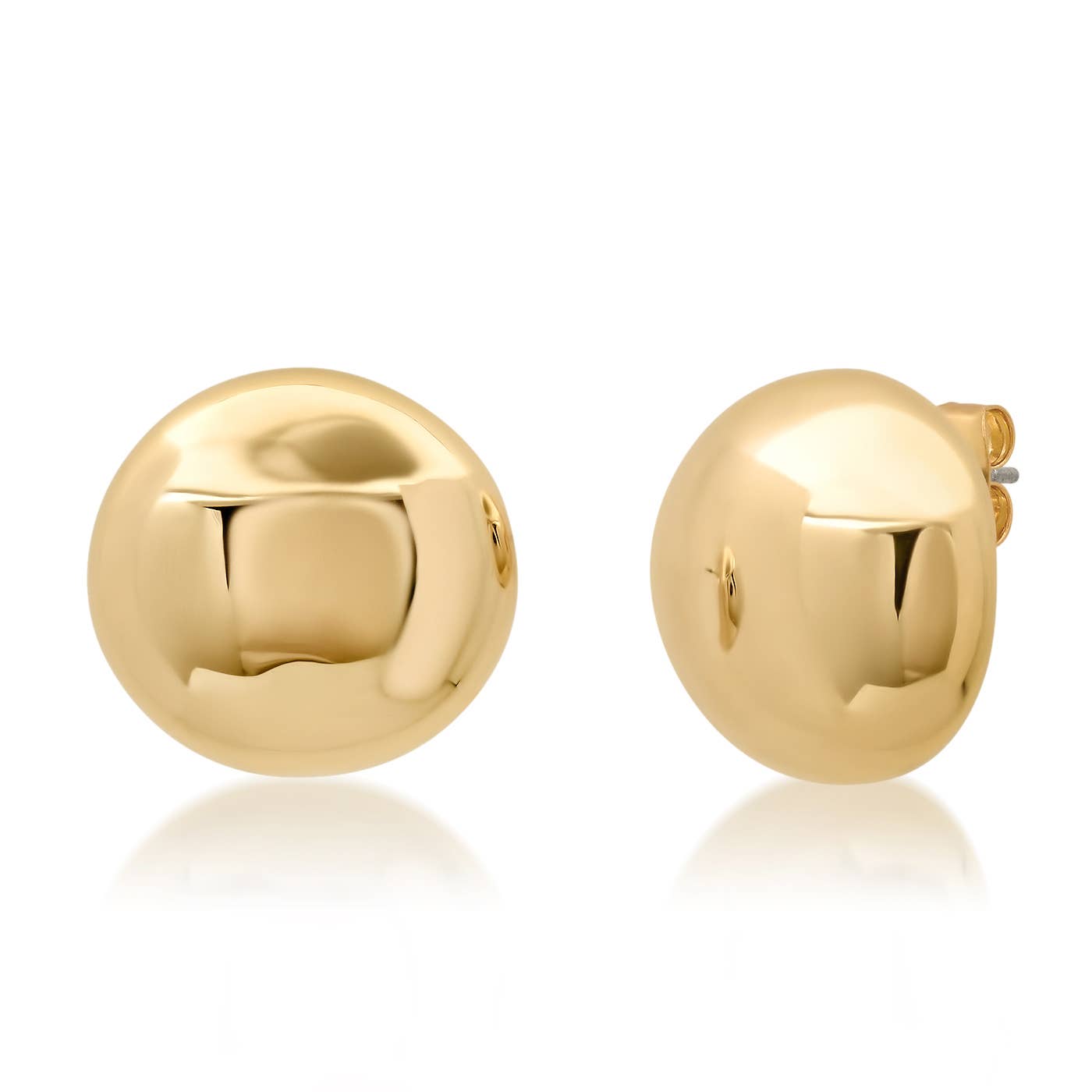Our Jadan Studs are a modern classic. These small earrings feature a smooth, wide surface and a striking domed shape, creating a bold and eye-catching look. Tarnish-resistant silver-plating that is long-lasting with proper care Stainless steel posts 13x8.5mm Nickel- and lead-free