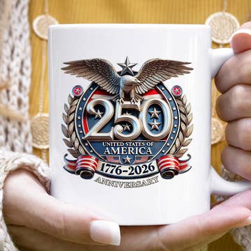 Celebrate American heritage with a fresh twist. Our officially licensed America250® Patriotic Flags mug features hand-painted flags with a snappy red bow and a commemorative logo. A timeless, elevated All-American look. Perfect for July 4th mornings, summer entertaining, and everyday use, this ceramic mug makes a thoughtful hostess gift, seasonal accent, or year-round favorite for coastal and Americana-inspired homes. Why retailers love it: • Strong appeal for July 4th & America 250th celebrations • Coastal-preppy design with broad giftability • Original artwork exclusive to The Muddy Dog • Easy add-on item with great margin Perfect for coffee, tea and hot chocolate, our 15 oz. premium ceramic mug features a large comfortable handle for easy gripping. It'll quickly become a favorite! + Dishwasher and microwave safe + Printed in the USA