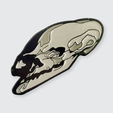 Designed by D. Kerper Arts. Inspired by the characteristics of "The Skeleton Dance" animation and Halloween fun. •Iron Die struck with black nickel plating •Hard Enamel •Laser engraving back-stamp with “D.Kerper Arts” on back •Rubber clutch included Size: 1.7" Thickness: 2 mm Ships in 5-7 business days