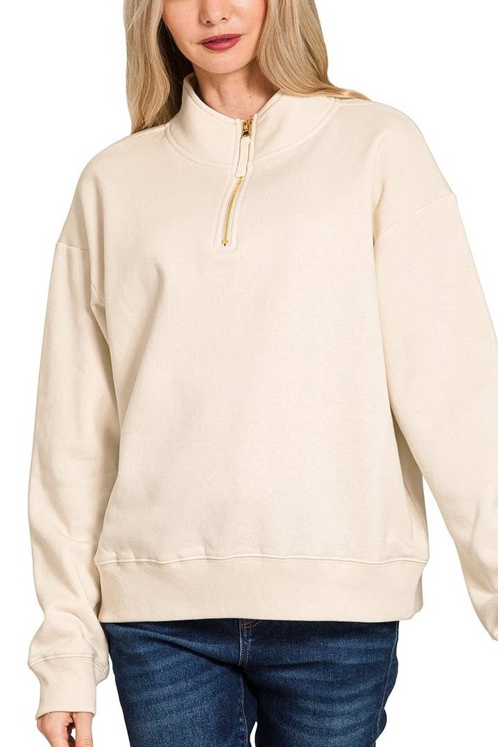 Introducing Miss Sparkling's Half Zip Pullover Sweater, a signature piece in our collection. This sweatshirt is designed with a unique, retro-inspired design, reflecting our brand's commitment to evolving trends and an effortlessly cool vibe. Add our stylish half zip pullover sweater to your collection!