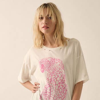L Pink SIDE CHEETAH GRAPHIC TEE for wholesale on Faire1