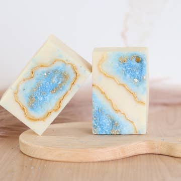 SKU: YUM1025 Made in Canada Beauty Concerns: Hydrating Formulation Type: Solid / Bar Occasion: Everyday Scent: Citrus and Earthy & Woody Size: Standard Product Language: English and French Ingredients: Extra virgin olive oil, Sustainable palm oil Coconut oil Cocoa butter Apricot kernel oil Aloe butter Castor oil Aloe vera juice Mica royal blue Mica blue green Lime essential oil Tangerine essential oil Blood orange essential oil Cedarwood atlas essential oil Eucalyptus globulus essential oil Bergamot essential oil Patchouli dark essential oil Weight: 100 g (3.53 oz) GTIN: 00850068082179 Product Materials: Vegan Packaging: Recyclable Production: Cruelty-free and Ethically sourced