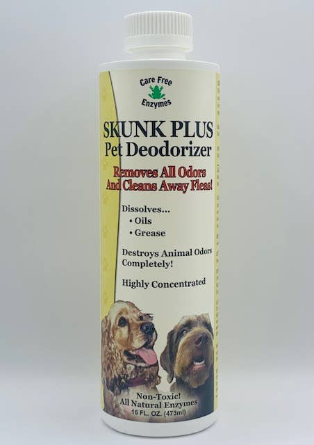 Skunk Odor Killer with the natural power of Tea Tree Oil. Gentle on pet skin and fur, but tough on noxious odors from skunk thiols. Also eliminates urine and vomit odors. Eliminates skunk and other animal odors from furniture, fabrics, carpets, and any surface contaminated by powerful skunk stink: kennels, pet beds, car interiors and more. Stink SlayerTM does not contain bleach or harmful chemicals and is safe for humans, too!