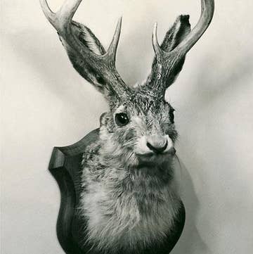 Carl the Jackalope is a 5x7 hand-printed linocut original by Bria Hammock. Each piece is hand-carved, inked, pulled, and signed—packaged in a clear sleeve with chipboard backing, ready to display. Made in the USA. Weight: 1 oz (28.35 g).