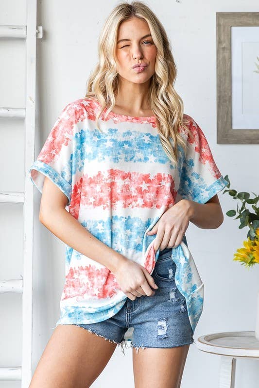 AV1129-JULIA GEO PRINT COLOR BLOCK TOP