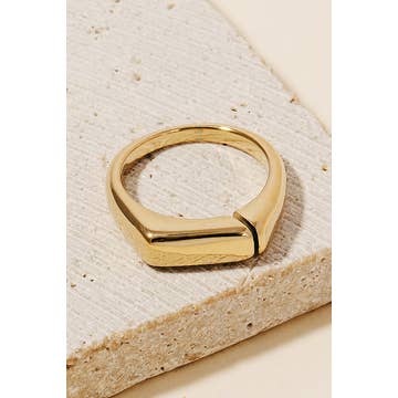 Black Onyx represents perseverance, strength and is associated with relaxation. It shares the nickname "worry stone" from the middle east, onyx balances the Root Chakra. It helps to stabilize and ground you. Solid Signet Ring in 14k gold plated steel Designed in Nashville, Tennessee Available in sizes 5-11 Not sure what size you are? We got you covered with our ring sizing band!