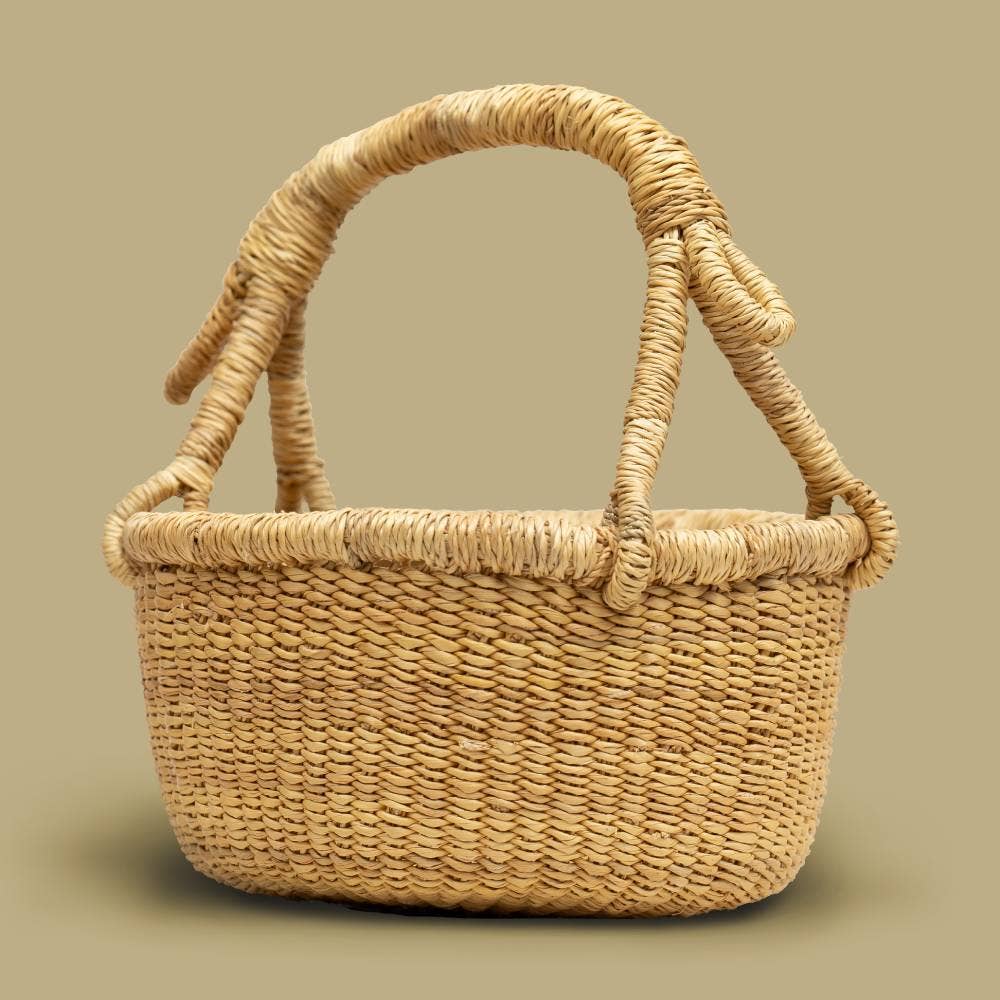 Straw bag made from locally sourced Lepironia. Perfect for shopping bags, weekends, and beach holidays. Easy-to-carry Natural Lepironia handle. Adding a lovely natural touch to your look with natural and sustainable materials. Measurements Height 17 cm. / 7 inches Width 17 cm. / 7 inches Depth 15 cm. / 6 inches
