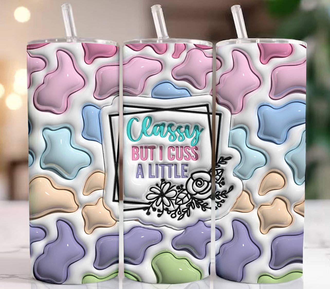 Our 20 oz stainless steel straight-sided tumblers are double-walled and vacuum insulated to keep your drink at the perfect temperature all day long. Keeps drinks hot for up to 8 hours and cold for up to 12 hours! Tumblers are made using sublimation transfers. No harmful chemicals, epoxy, or vinyl used. They are dishwasher safe, however hand washing is recommended to preserve the life span of your tumbler. Some tumbler designs may have a visible seam. Packaged in a white box with a non-slip silicone base, lid, straw, and straw cleaner. Images may vary slightly from your monitor, phone screen, tablet due to the screen resolution/brightness. Due to the handmade nature of this item, there may be small variable differences between tumblers. **Tumblers are able to be shipped in under 7 days.