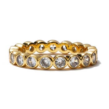 A classic baguette cut for just a touch of color, nestled inside a ring of bright gold. Made for stacking, layer in this definitive shape for a fresh new take. We crafted our collection of rings to make every day a reminder of joy, self-love, and to shine from within. Tarnish Free - Long lasting protective coating safeguarding your jewelry from sweat, water, and more. 5x more gold that standard 18k gold plating over brass Hypoallergenic – Lead Free White Opal Band width approx. 2mm at thinnest, 4mm at widest Sizes 6, 7, 8