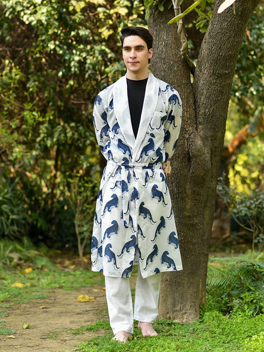 Light weight - packs small for traveling Two front pockets One size fits most 100% cotton Hand printed in India Machine washable Hang or tumble dry