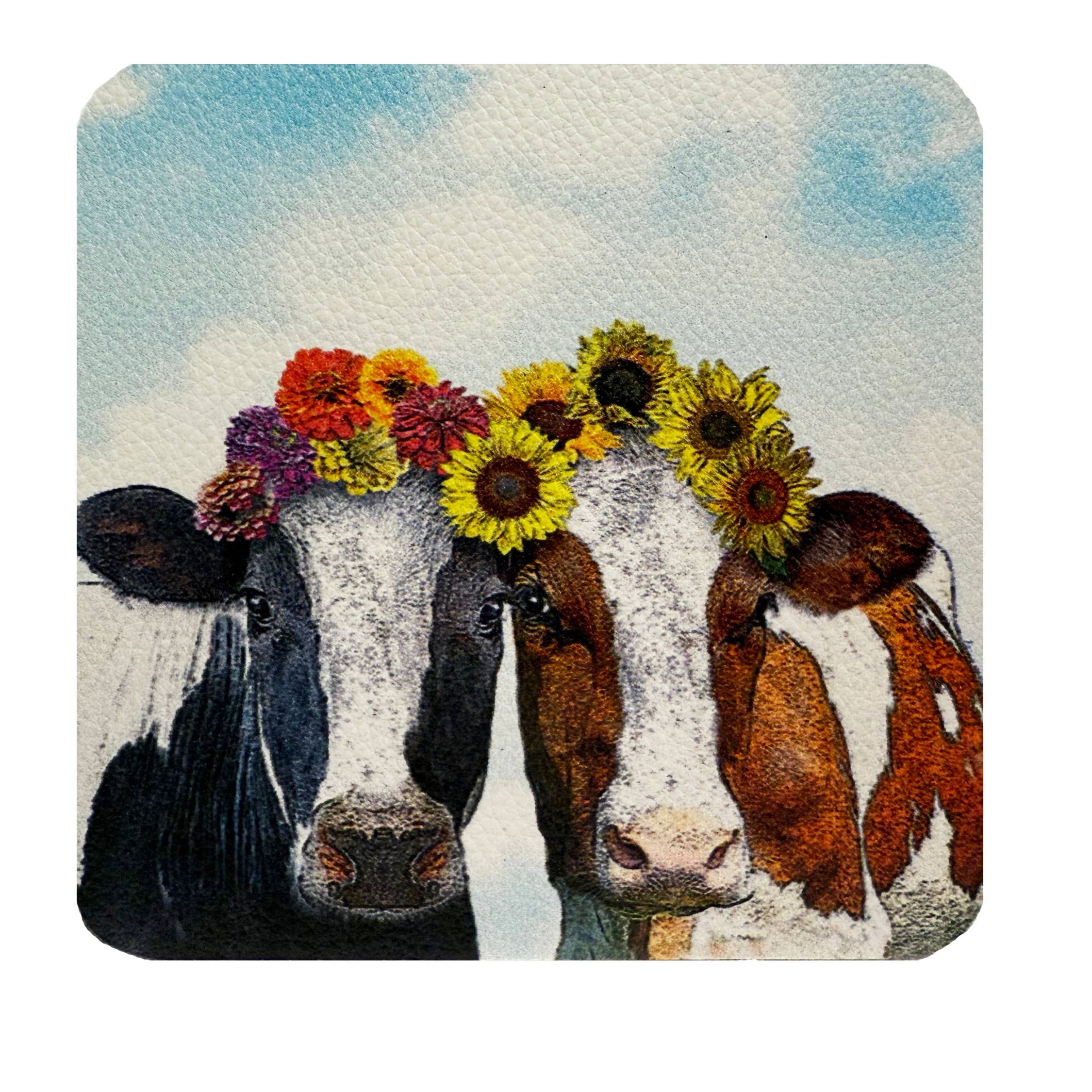 made of copper-infused vinyl, size 4.25" x 4.25", comes as a set of 4 wrapped in a clear cello bag. All artwork by Pennsylvania artist Eric Fausnacht
