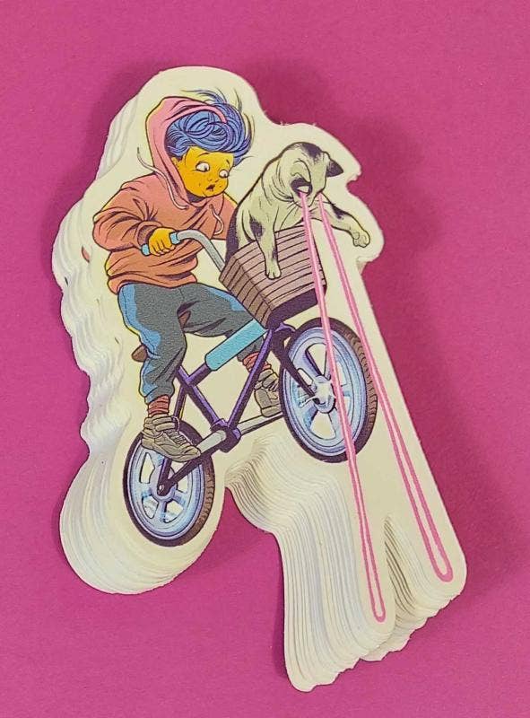 The Design: Hand drawn poodle on a bicycle. Material: Durable printed vinyl Size: 3.47" x 5.8"