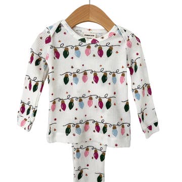 Available now in two colour-ways. Our gorgeous ribbed fabric features in a crop top with tie straps and our best selling Baby Flares. This set is a must have for your little girls.