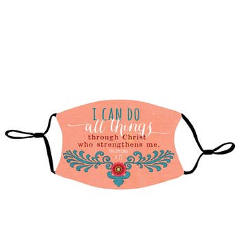 SHARE YOUR FAITH WHILE YOU'RE TAKING CARE NOT TO SHARE THE VIRUS! EACH MASK HAS TOW LAYERS - THE OUTER IS SUBLIMATED WITH AN INSPIRING, FULL COLOR CHRISTIAN DESIGN ON 100% POLYESTER OUTSIDE AND ON 100% COTTON INSIDE. BLACK STRETCH FABRIC LOOPS HAVE SLIDING ADJUSTERS FOR A PERFECT FIT. CURVED SHAPE EASILY COVERS NOSE AND CHINE. MASK SIZE IS ABOUT 5" X 7". NO FILTER POCKET. TO CLEAN , MACHINE WASH AND DRY OR HAND WASH IN WARM WATER. MADE IN CHINA, PRINTED IN THE USA.