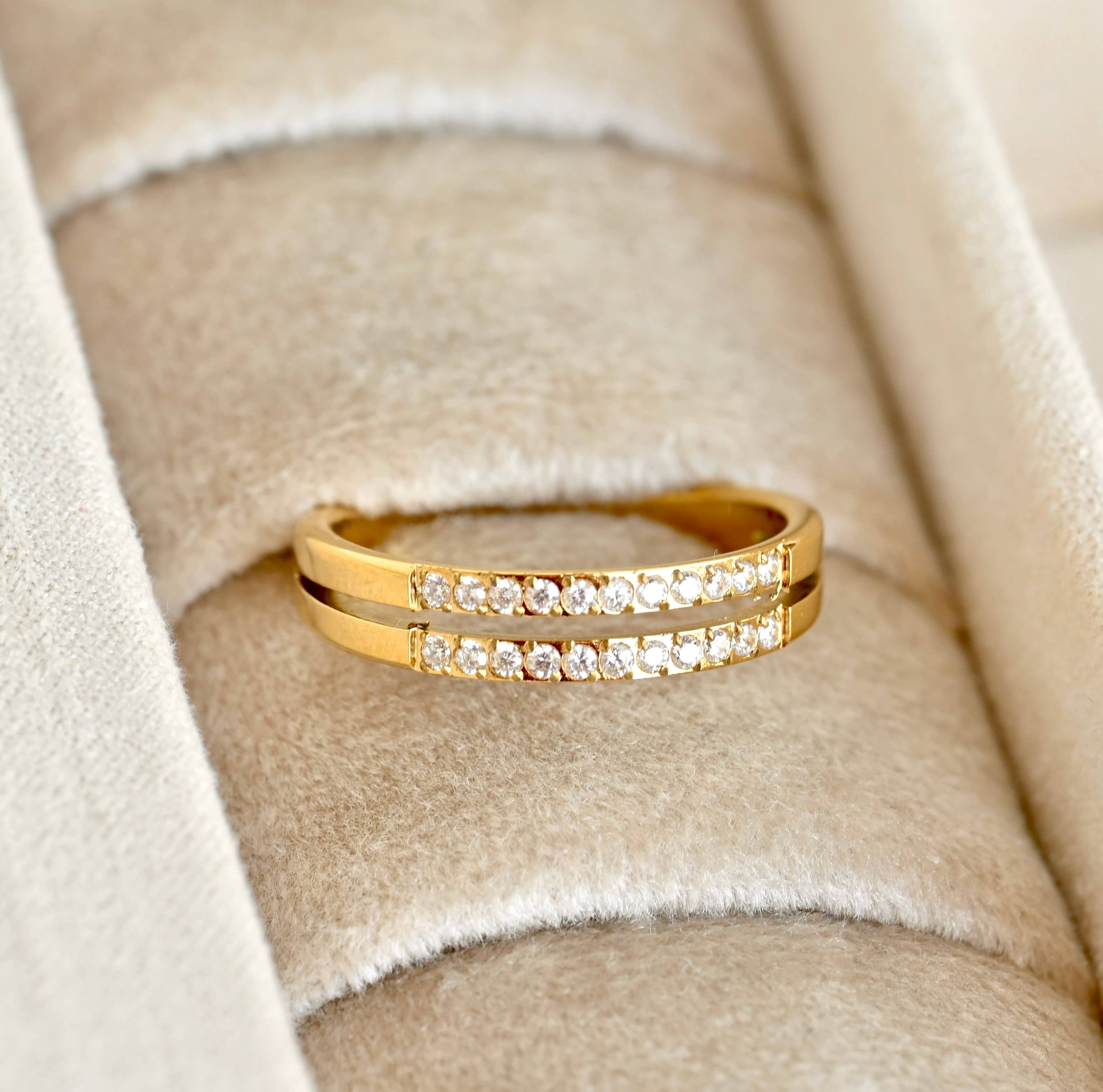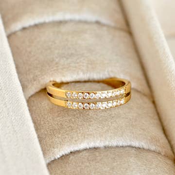 Reflect the allure of a shimmering night sky with the Luna Diamond Ring. Featuring seven single cut round diamonds in a sparkly line, this petite 14k solid gold band brings a little indulgence to your everyday style. Stacked with other pieces for a luminous layer or worn solo to achieve a timeless shine, this ring puts a touch of pure magic in your moments. Delivered from the Made by Mary studio in a giftable book-style box, each piece is carefully crafted with your story in mind. Details * Color: 14k Solid Gold * Size: 6, 7 and 8, Whole Sizes Only * Additional Information: * Stone Information: * Natural Diamonds * 0.035 ctw GH SI3 * Band Width: * 1.25mm