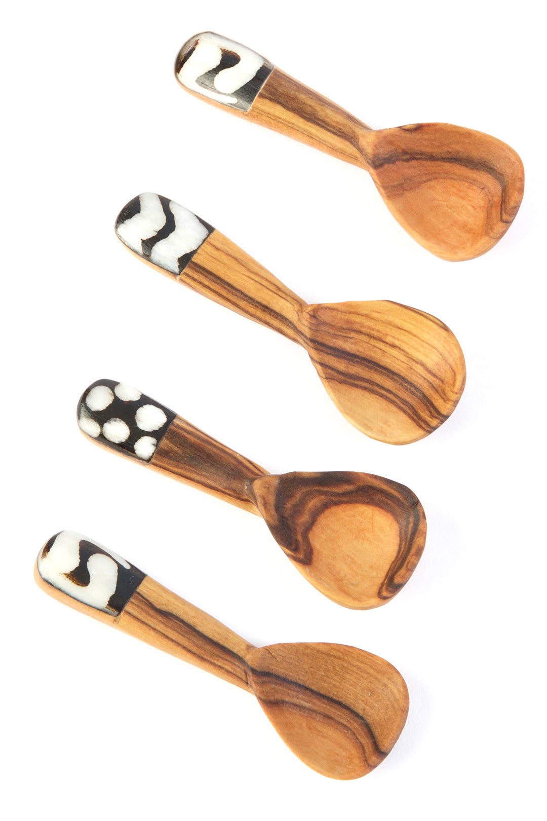 This fun set of small wooden bowls makes a great gift for culinary enthusiasts. Each bowl is hand carved from wild olive wood, a beautiful hardwood indigenous to Eastern Africa, by the Kamba people of Kenya. With care, wild olive wood bowls grow more and more beautiful with age. Sold as a set of three bowls. Because this is a handcrafted item, each will vary slightly. Dimensions: Large: 4"D x 2"H. Medium: 3"D x 1.5"H. Small: 2"D x 1"H Crafted from: Wild olive wood, cow bone