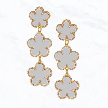 2in GRAY ROUND STONE EARRING WITH BEADED CLOVER DANGLE