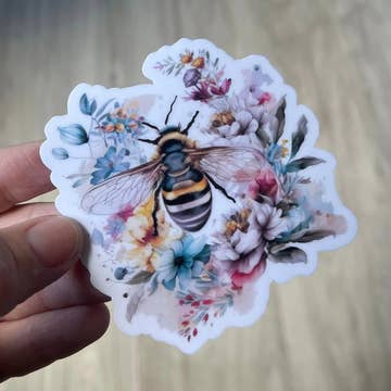 STICKER MATERIAL & FEATURES ⋙ professionally printed ⋙ made of durable, high-quality vinyl ⋙ glossy & holographic finish ⋙ weatherproof ⋙ water-resistant ⋙ dishwasher safe ⋙ fade-resistant Measures approximately 2.25"x1.5” Sticker is hand-drawn by Rachel of Lemon Press Studio, featuring an illustration of a bee with a holographic glitter finish on the yellow stripes