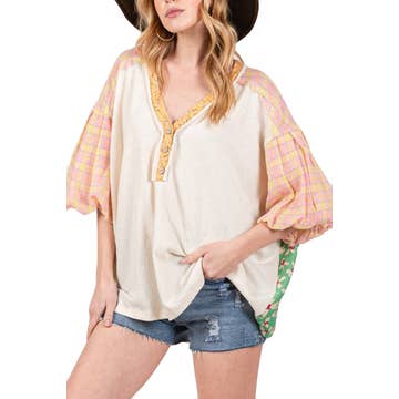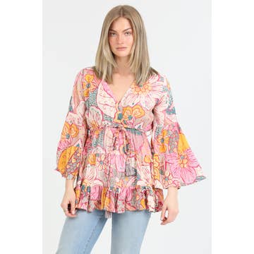Wholesale Boho Multi-Print Patchwork Floral Tiered Tunic Top IN PLUS