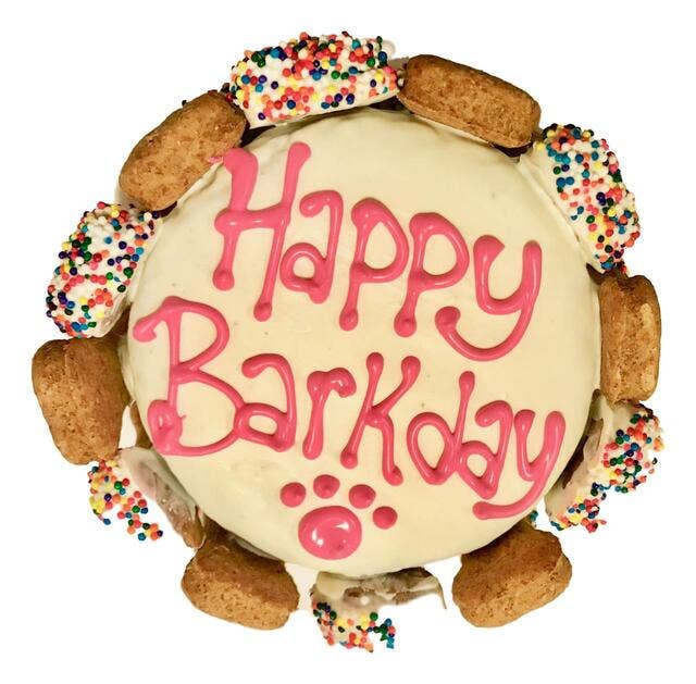 Yogurt Covered Sprinkle Cake w/Carob Writing - Dog Treat
