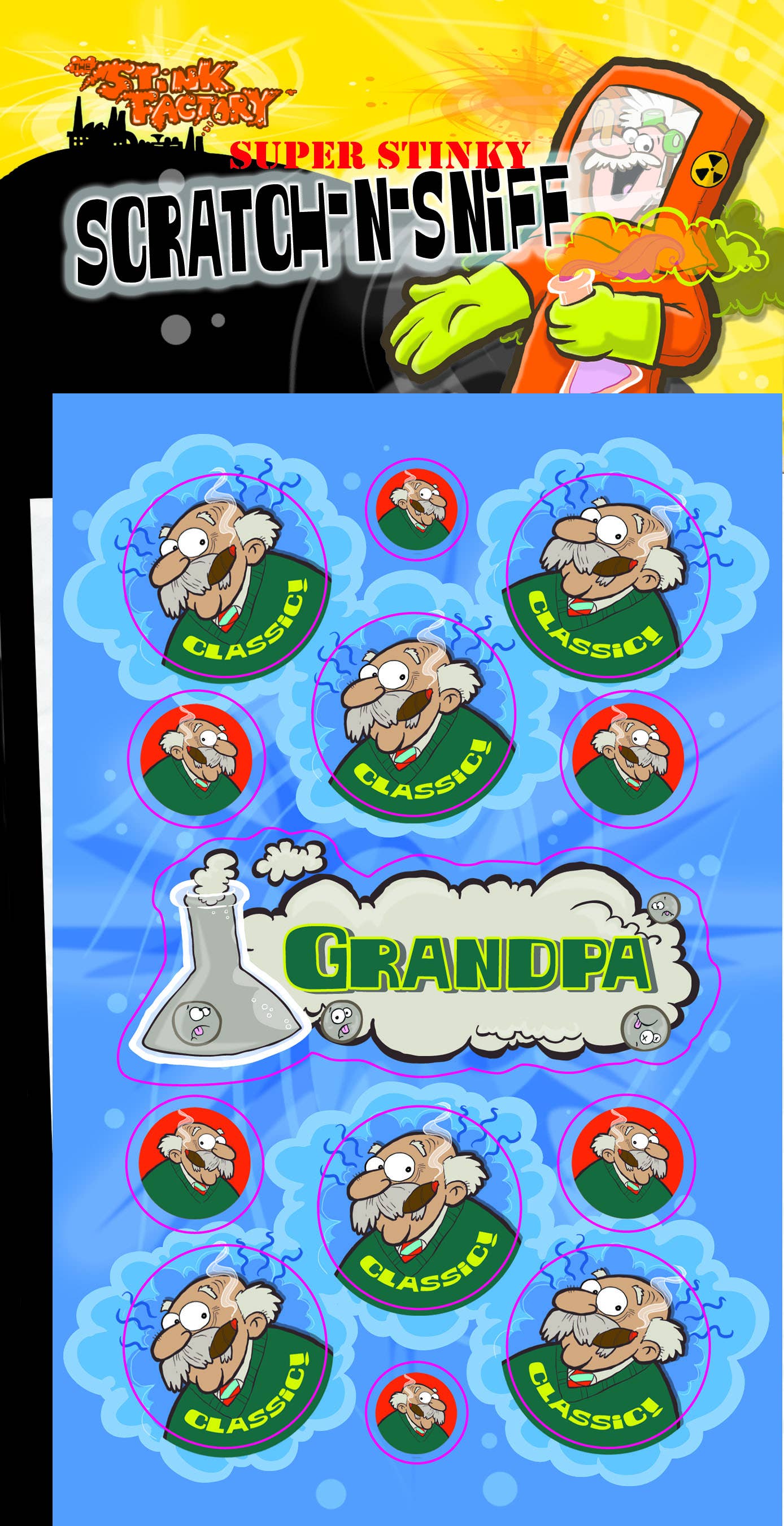 Each package contains 2 sticker sheets and 1 hidden, limited edition sticker. Super Stinky! NEW! Decorate notebooks, reward good grades, and collect 'em all! Over 80 styles to collect, trade, and sniff! The Stink Factory uses the highest quality inks, scented oils, and encapsulated inking processes to create its incredibly long-lasting scratch 'n Sniff stickers. Great for teachers and back to school