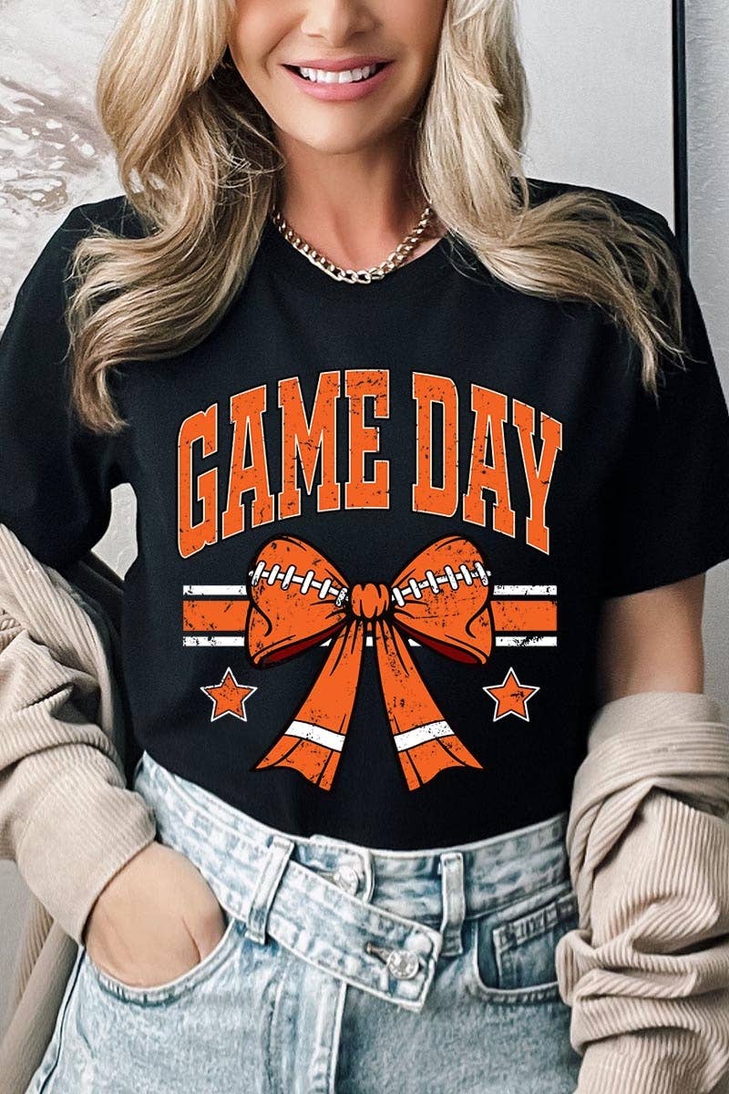 Orange Black Football GameDay Bow Garment Dyed Tee