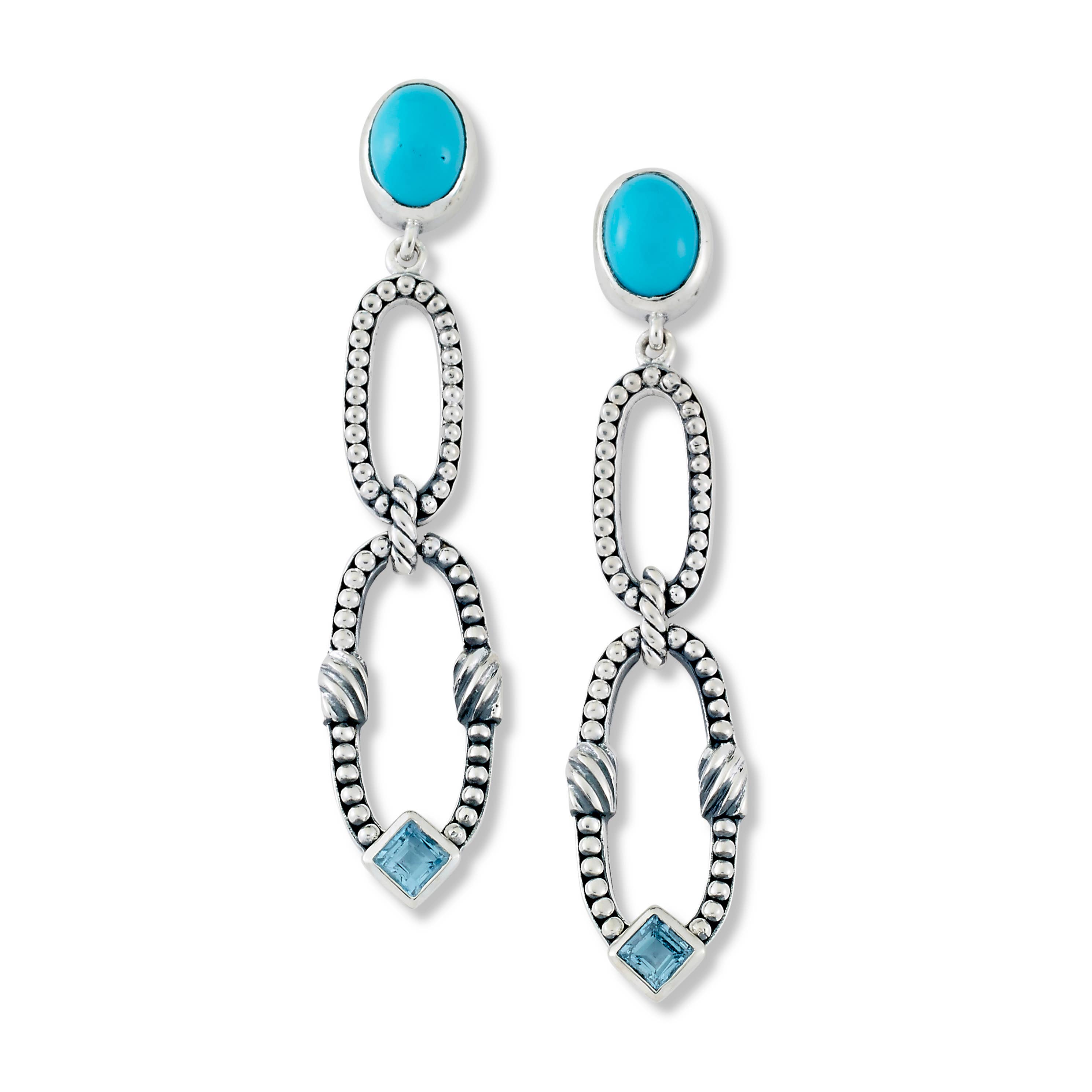 WESTERN GEM LINK DANGLE EARRING, APPROX DANGLE LENGTH: 2" Product color and quality as seen on a monitor may vary slightly compared to actual items due to photography lighting conditions and individual screen color calibration. Please contact Andrea Bijoux for questions regarding additional item details western, tq, turquoise, gem, gemstone, gem link, dangle, burnished silver,