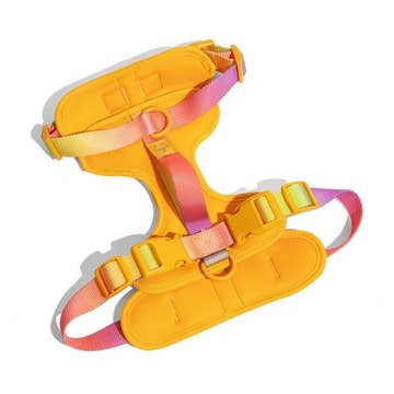 Lead your pup's movements gently, safely, and stylishly with an exclusive Pawz rainbow dog harness & matching rope leash. Designed for everyday wear, this fashionable harness prepares your four-legged friend for adventures outdoors and provides comfort and security during your daily walks. Both harness and matching rope leash are made from 100% durable nylon for everyday wear and use. The matching rope leash measures 47 inches long and features a round weave design and metal swivel snap to prevent tangling. The matching harness is available in 3 sizes to ensure the perfect fit and features double metal d-rings for easy leash attachment, adjustable slides for comfort, and plastic clips for safety.