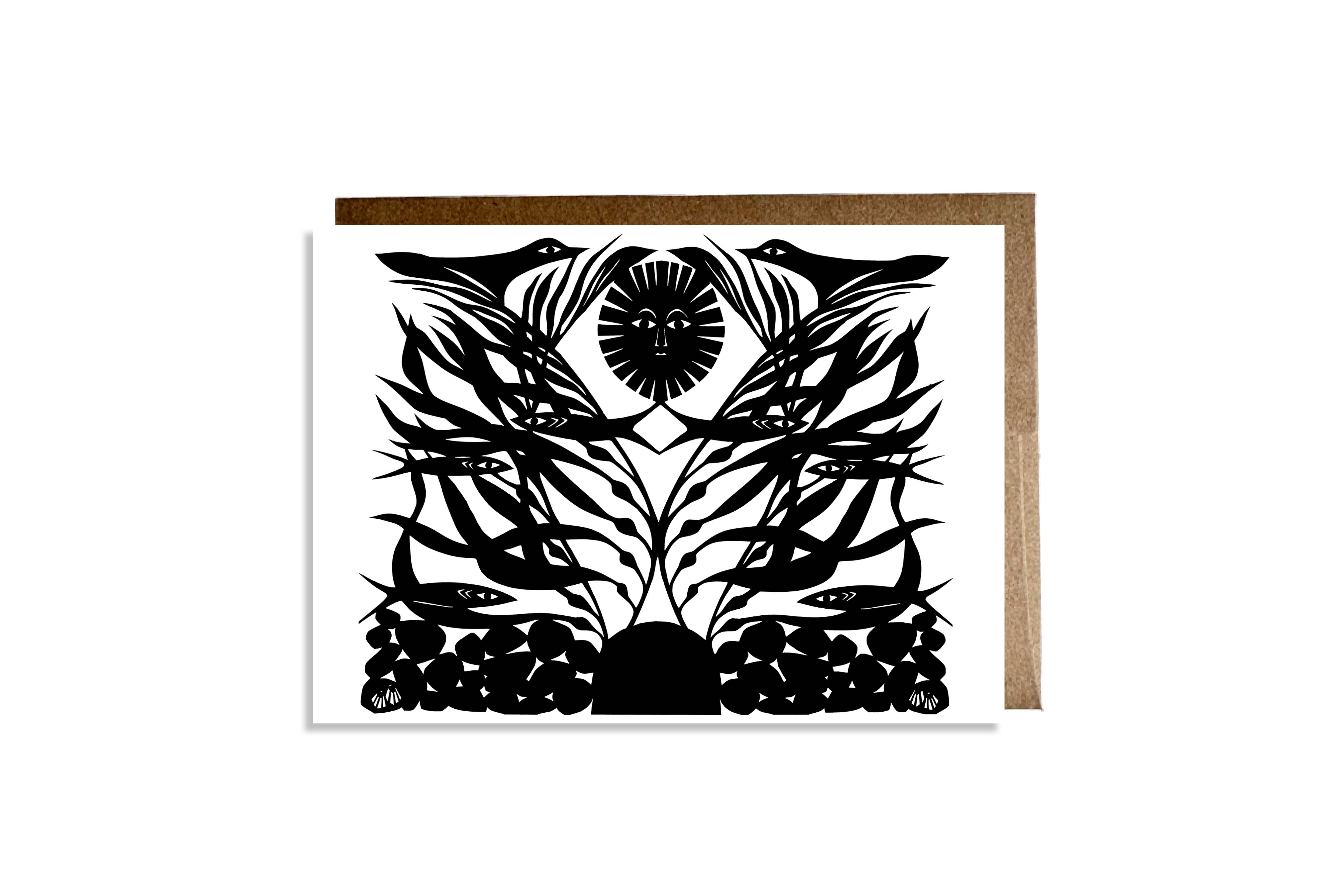 These greeting cards feature prints of Dafri's original mixed media collage paintings. Printed on 100lb card stock A7 size 5"X7" Blank interior Comes with a Kraft envelope